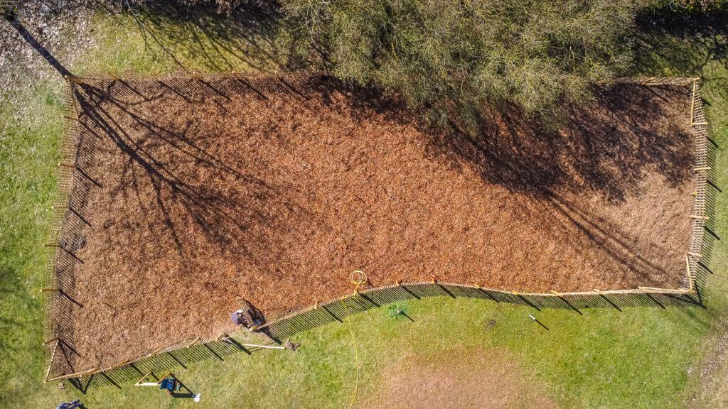 Nach nur drei Stunden war alles erledigt. Während die Stieleichen, Ebereschen, Himbeeren und 27 anderen Arten auf der Fläche Wurzeln schlugen und die Freiwilligen sich mit frisch gegrillten Bratwürstchen oder Kaffee und Kuchen stärkten, brachten die Profis vom MIYA Forest e. V. noch den Zaun an, der die Setzlinge davor beschützen soll, von Rehen und anderen Tieren aufgegessen zu werden.